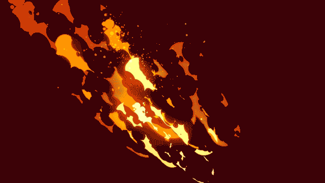 An early test render from a particle system we modified to produce the cell shaded fire effect and rather than illustrate every fire shot effect frame by frame, we opted to develop a more robust particle based system that could easily be tracked it to various objects (i.e. basketballs) to produce the fireball shot effect. All effects were animated in after effects with Trapcode Particular.