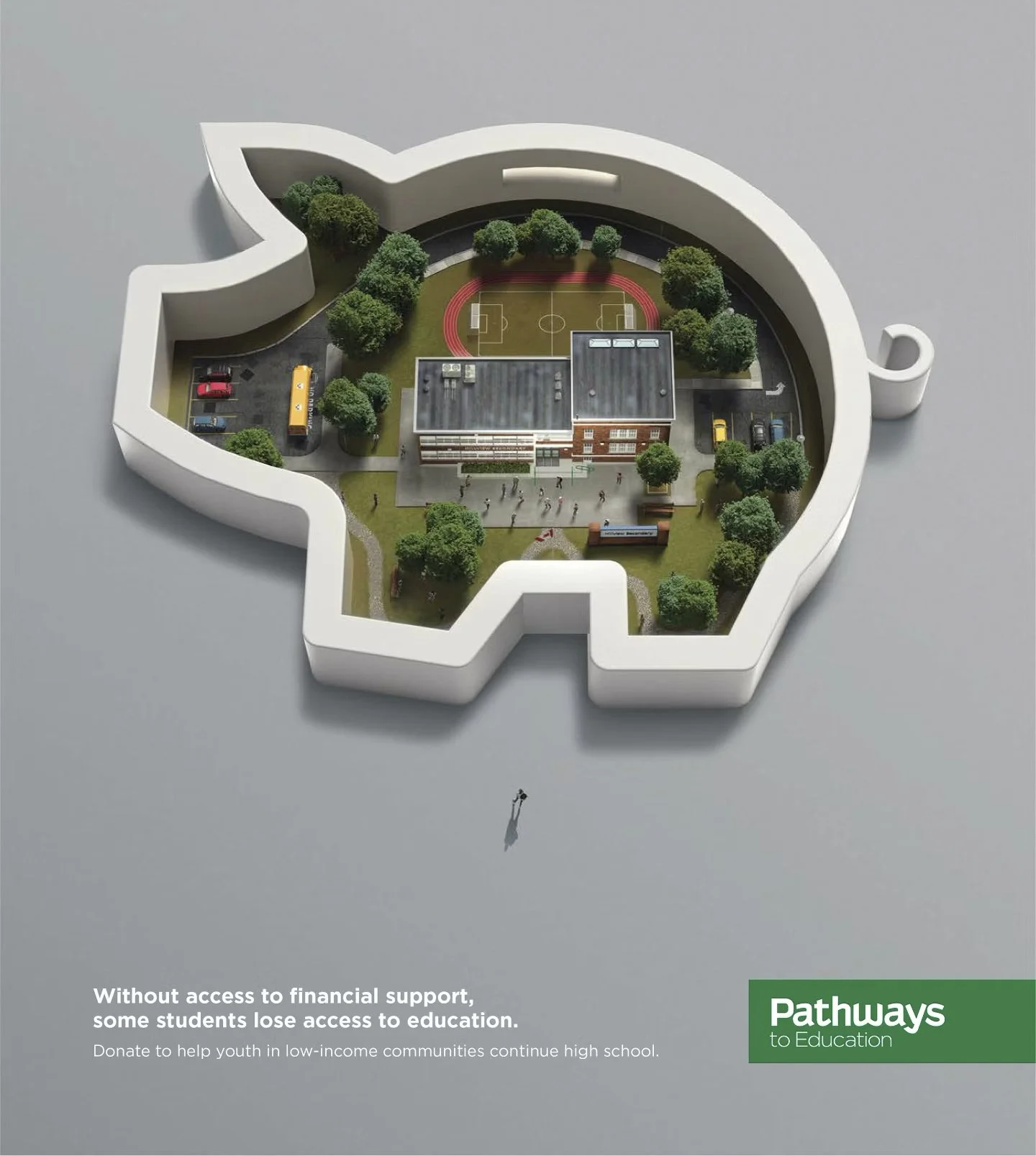 Pathways to education is a NPO in Canada that partners with local communities to help young people reach their full potential. When students living in low-income communities graduate from high school, their families aren’t the only ones with a reason to celebrate. Graduation is the key to a more equitable economy, a healthier population, and a better future for all Canadians. I was approached to help build out these spots to raise awareness of the issue. The concept was to show a visual/physical barrier in the form of a readily identifiable icon (i.e a power button, a piggy bank icon, a housing icon) and have these move up and prevent a student character from reaching their school. A simplistic but decently effective visual that got the point across pretty fast. I was tasked with the look development and creation of the 3d modelling, character rigging and texturing for these spots. The texturing process was remarkably fun as we got to paint in all the little schoolyard details for each spot. Overall a fast, fun and effective project for a good cause, what more can you want?